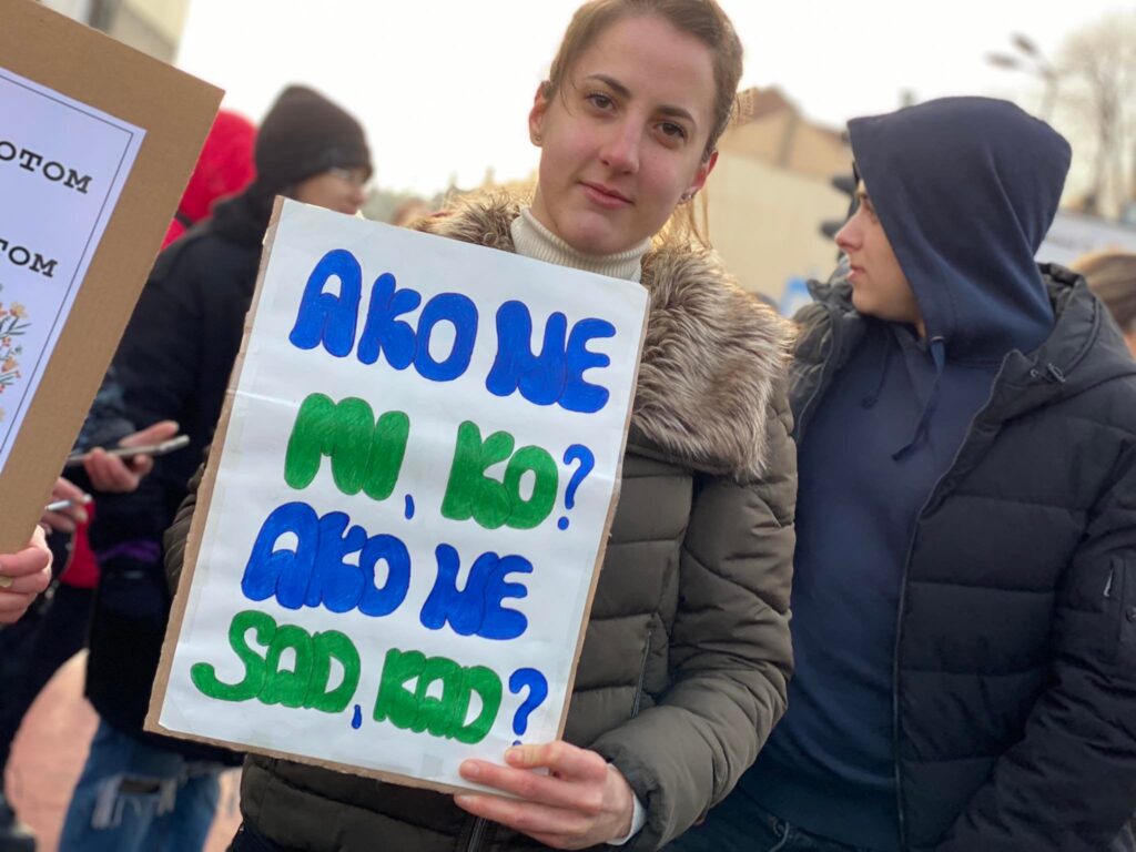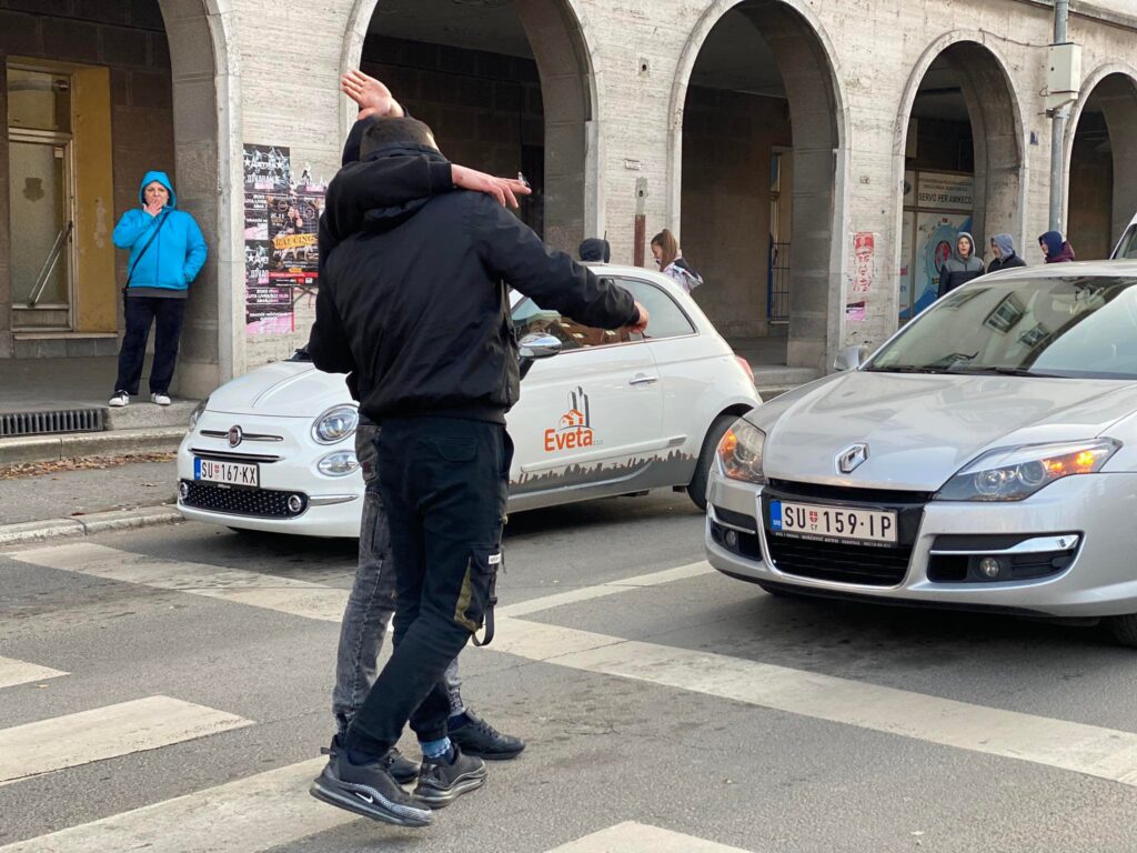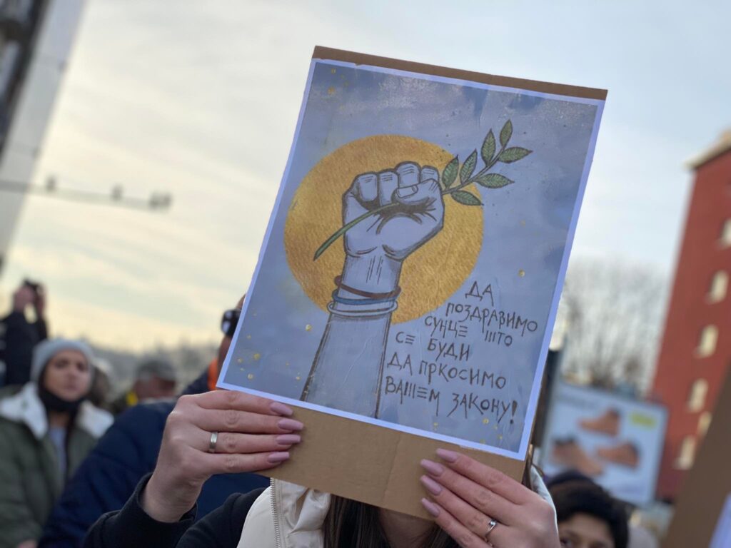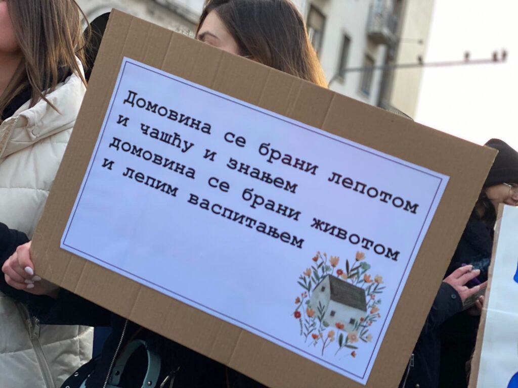 Demonstranti su duvali u pištaljke, neki od njih su nosili srpske zastave, a neki transparente na kojima piše “Ako ne mi, ko? Ako ne sad, kad?”, “Širimo virus slobode”.