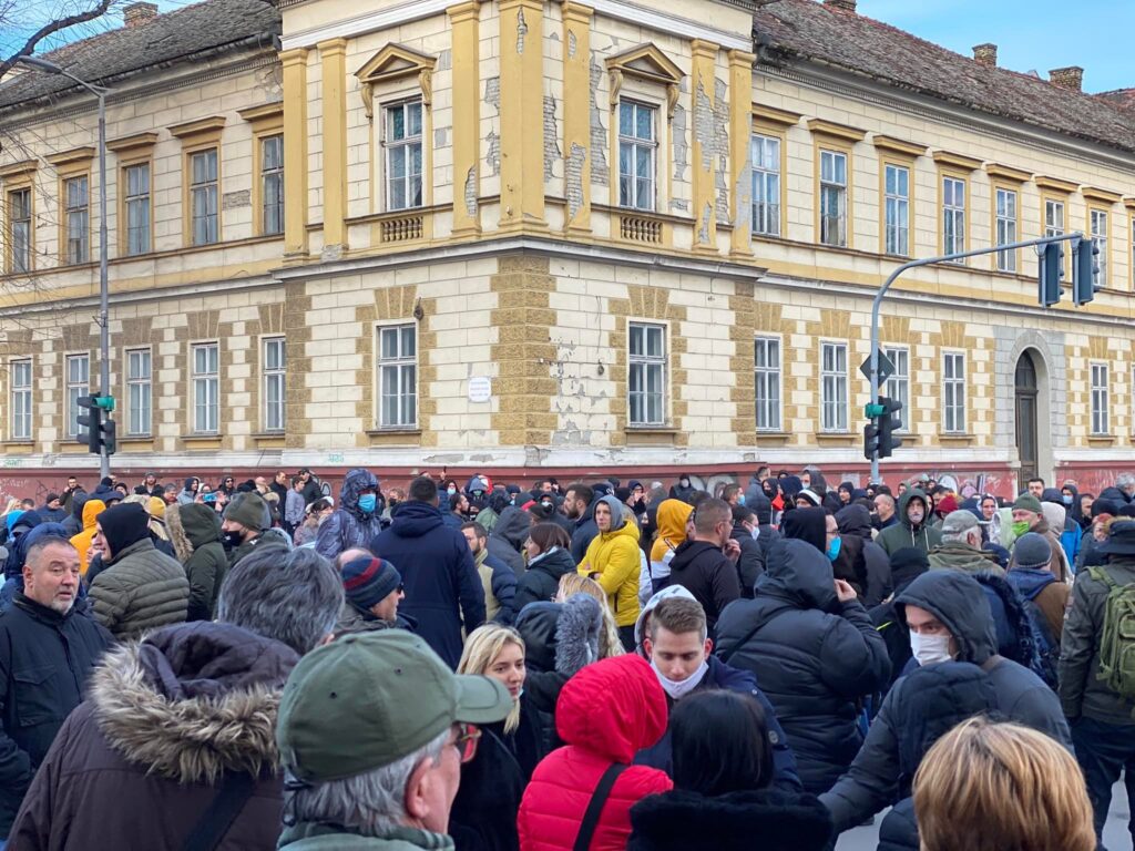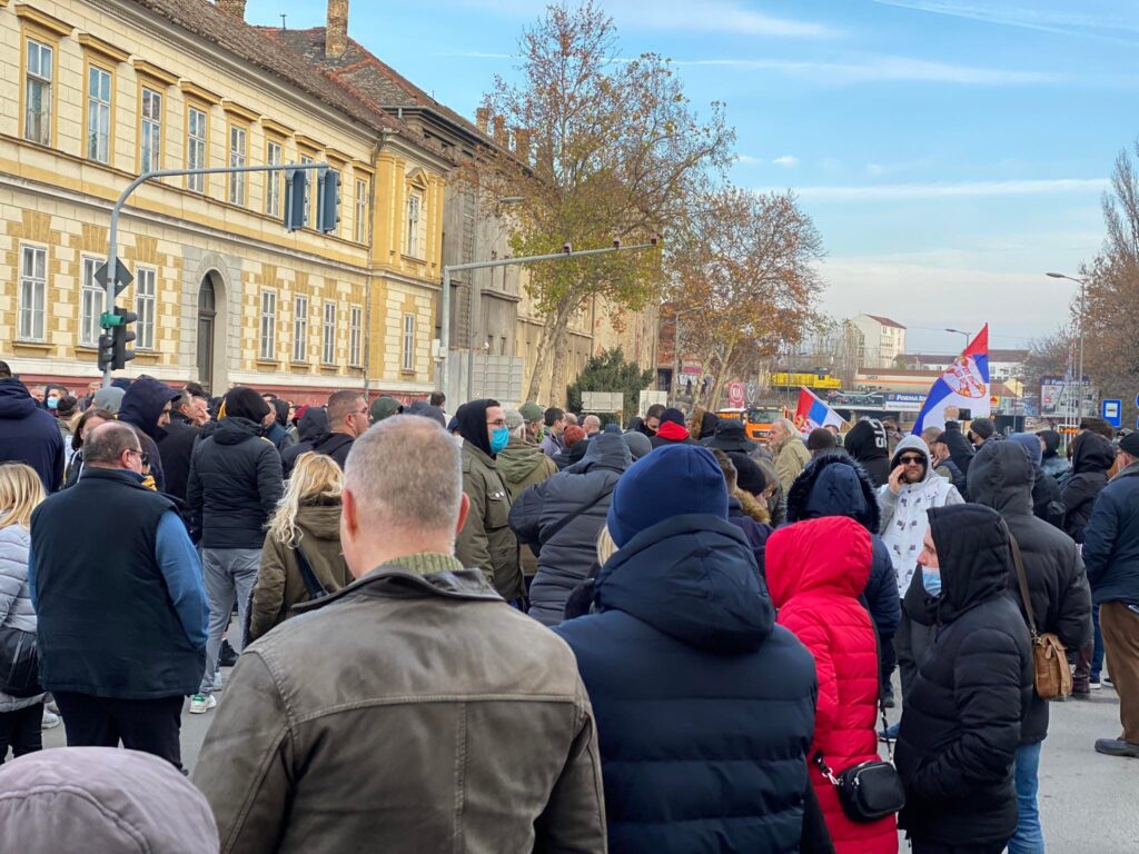 Nekoliko stotina demonstranata okupilo se danas u centru Subotice kod zgrade Nove opštine, i blokiralo saobraćaj vozila na raskrsnici kod hotela “Patria”.