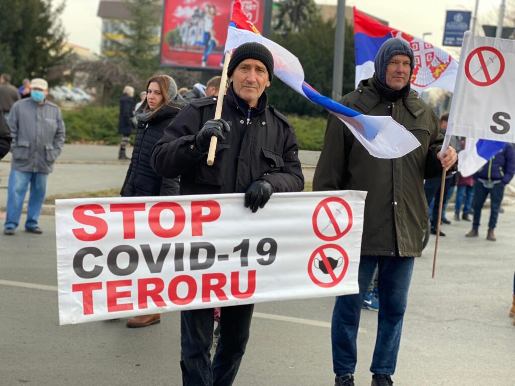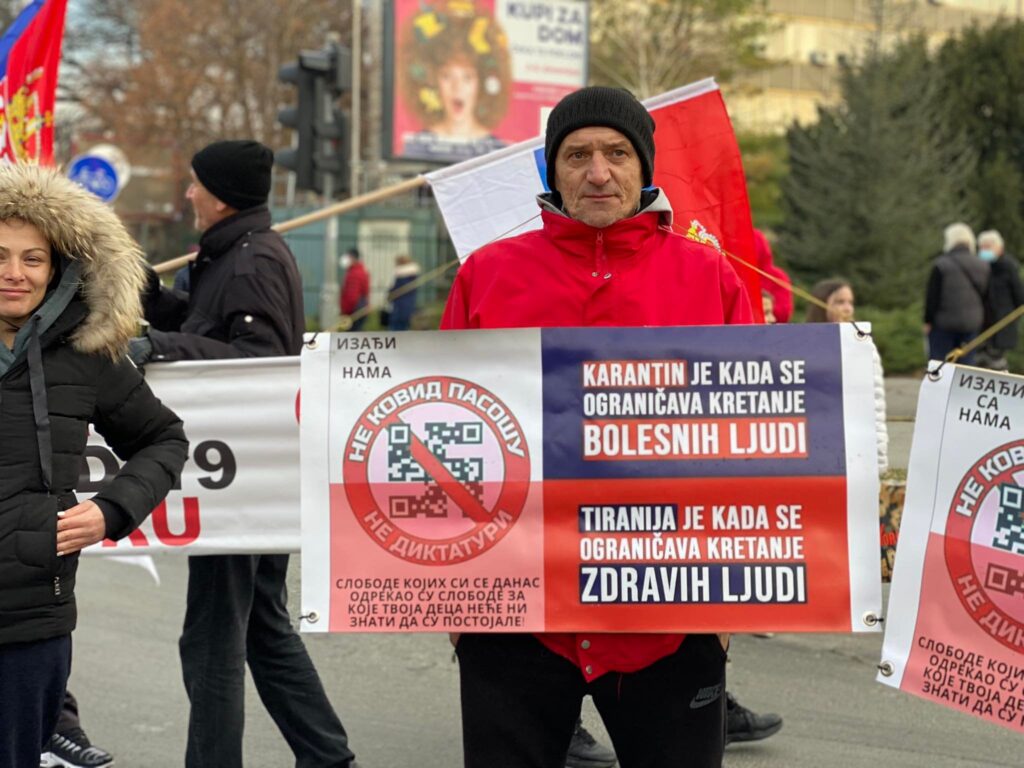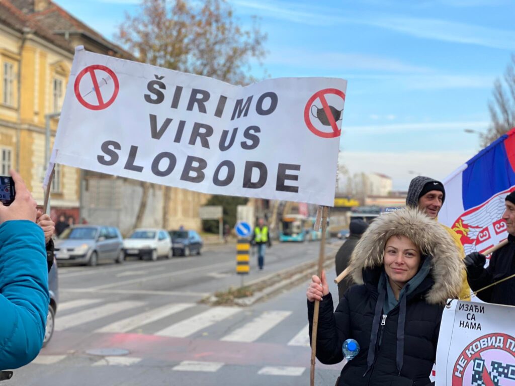 Na protestu su se pojavili i antivakseri, noseći svoje parole.
