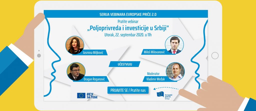 U okviru serije EU Talks 2.0, u utorak, 22. septembra, sa početkom u 11 časova, biće održana onlajn debata na temu “Poljoprivreda i investicije u Srbiji”, najavljuje organizator Evropski pokret u Srbiji u saradnji sa Delegacijom EU u Srbiji.