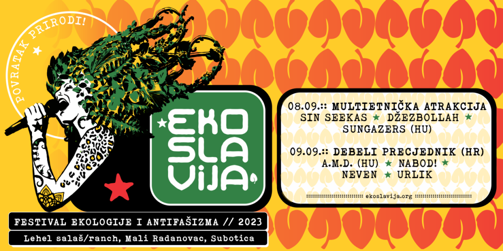 Festival ekologije i antifašizma “Ekoslavija”, četvrti po redu a ove godine pod sloganom “Povratak u prirodu!”, biće održan u Subotici u petak i subotu, 8. i 9. septembra, na Lehel salašu u Malom Radanovcu.