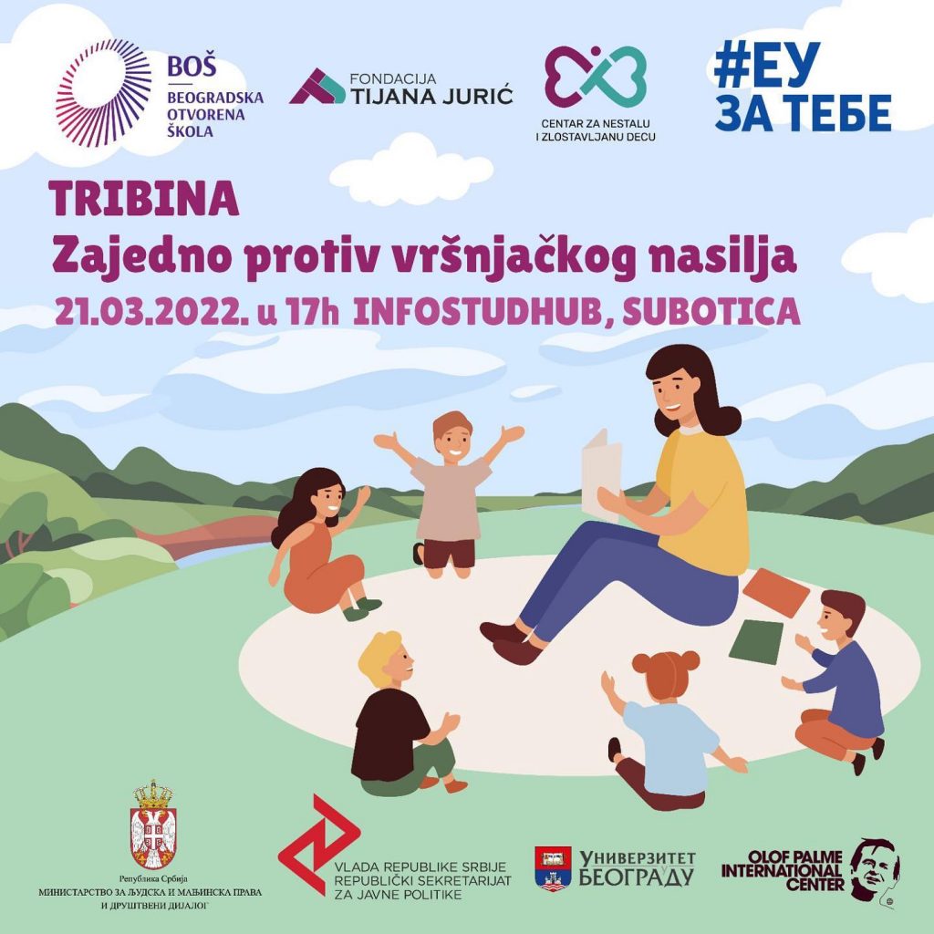 U organizaciji Fondacije “Tijana Jurić”, u ponedeljak, 21. marta, u Infostud Hub-u će sa početkom u 17 sati biti održana tribina “Zajedno protiv vršnjačkog nasilja” koju će voditi Igor Jurić, osnivač Fondacije, a tom prilikom biće predstavljena i inicijativa za uvođenje Koordinacionog tela za sprečavanje nasilja u srednjim i osnovnim školama.