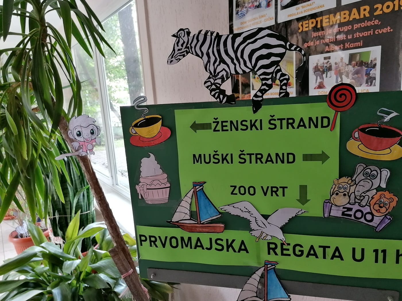 Na bezbednoj udaljenosti mogli su da se dive životinjama iz Palićkog Zoo vrta odnosno postavci male izložbe, dok im se u daljini smešio pejzaž Vinarije Zvonko Bogdan, Majkin salaš i drugi motivi Palića prikazani kroz retro izložbu postavljenu u prostorijama Ustanove, a to sve dok su čekali početak čuvene Prvomajske regate.