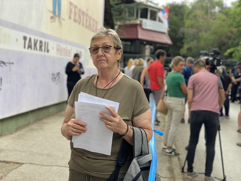 Zlata Jovanović je iz protesta ostavila ispred ulaza u JKP „Vodovod i kanalizacija“ flaše zamućene vode, kao i drugi građani, navodeći da se voda iz slavine ne može koristiti.