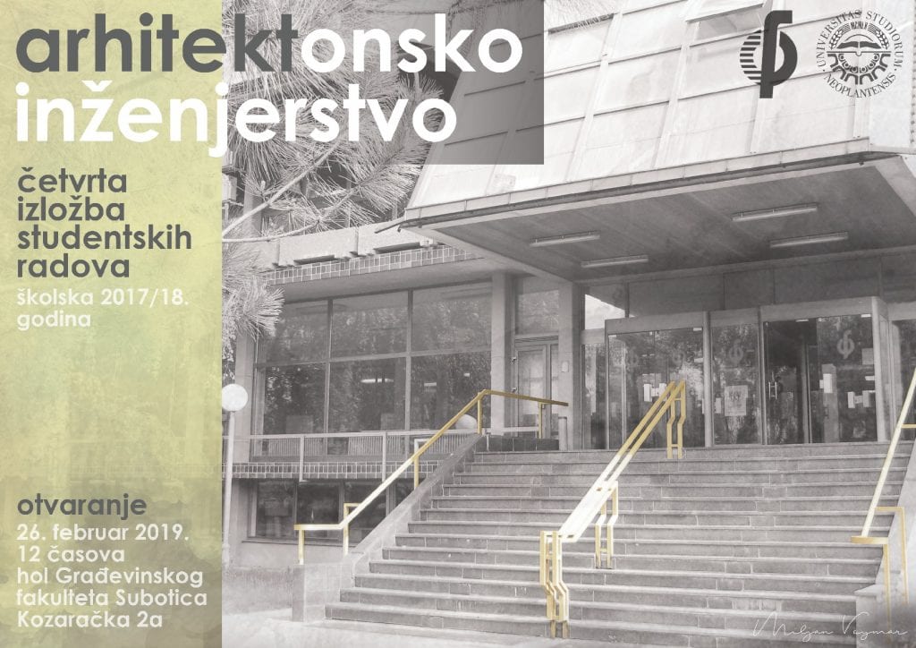 Četvrta izložba studentskih radova iz školske 2017/2018. godine studenata Građevinskog fakulteta Subotica, sa modula „Arhitektonsko inženjerstvo“, biće otvorena u utorak, 26. februara, u holu fakulteta.