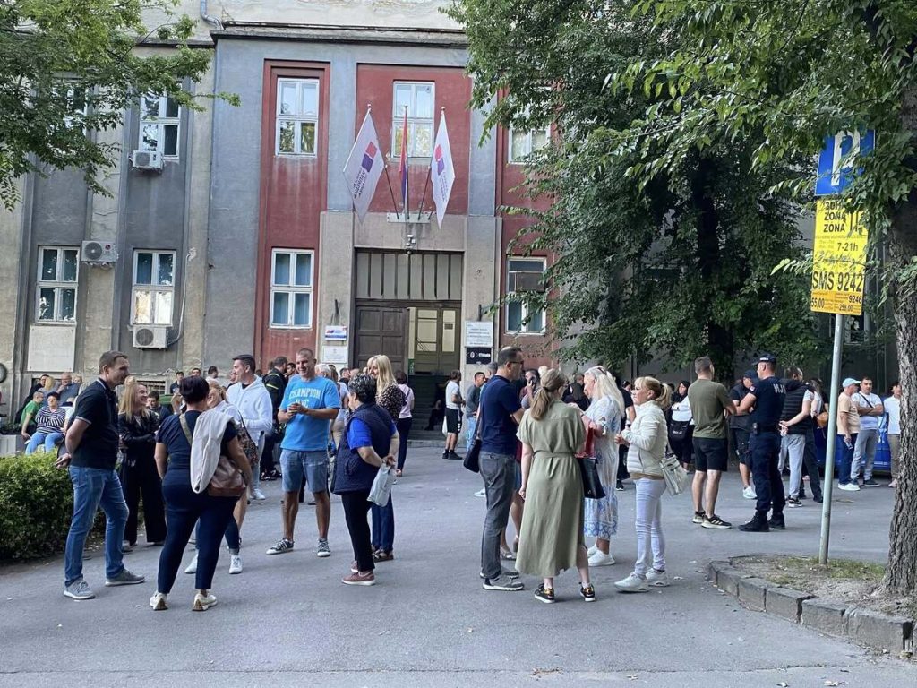 U isto vreme, članovi SNS-a su ispred stranačkih prostorija razgovarali i slušali narodnu muziku.