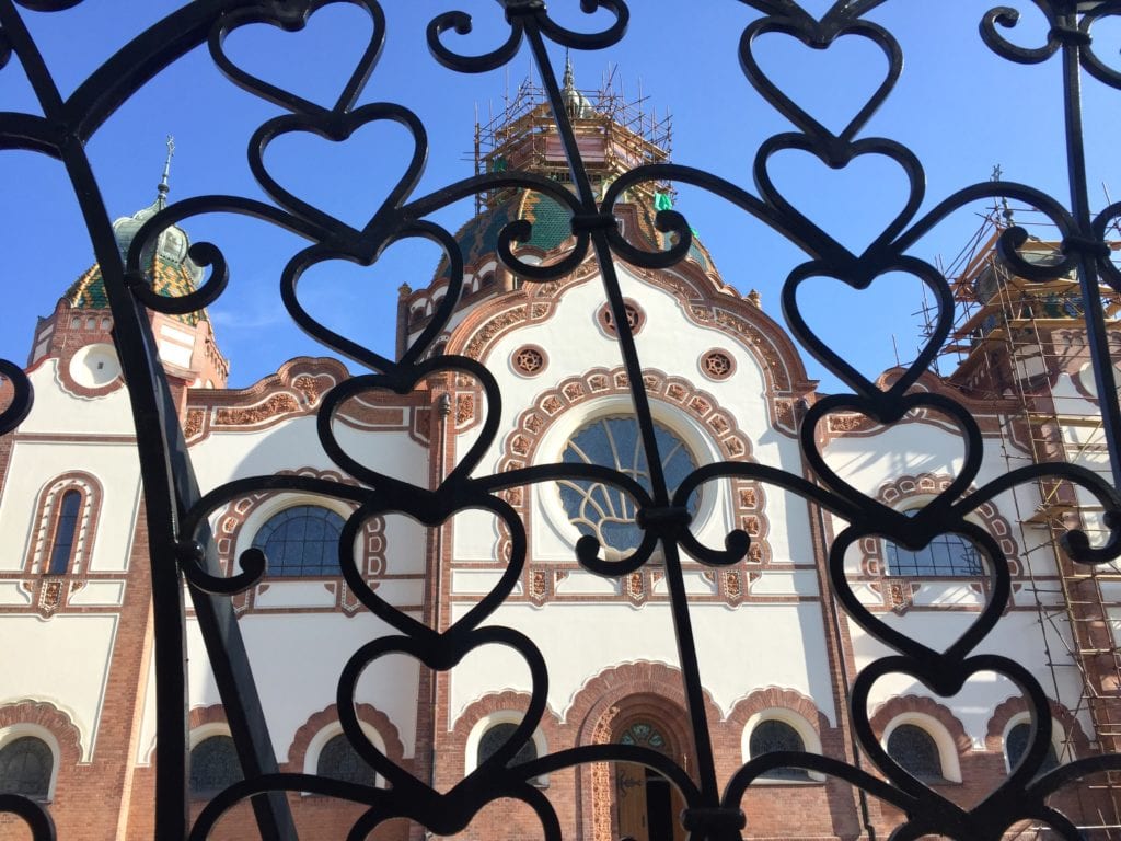 115-godišnju Sinagogu, remek-delo mađarske varijante secesije, projektovali su budimpeštanski arhitekti Marcel Komor (Marcell Komor) i Deže Jakab (Dezso Jakab), dok su vitraži delo radionice Mikše Rota (Miksa Roth).