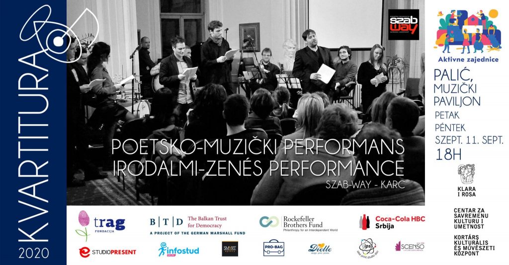Pod sloganom „U septembru kulturni događaji gostuju u vašem kvartu!“, u okviru programa „Kvartitura 2020“, za petak, 11. septembar, Udruženje „Klara i Rosa“ najavljuju poetsko-muzički performans trupe kArc koji će se održati na šetalištu na Paliću kod Muzičkog paviljona. Početak je zakazan za 18 sati.