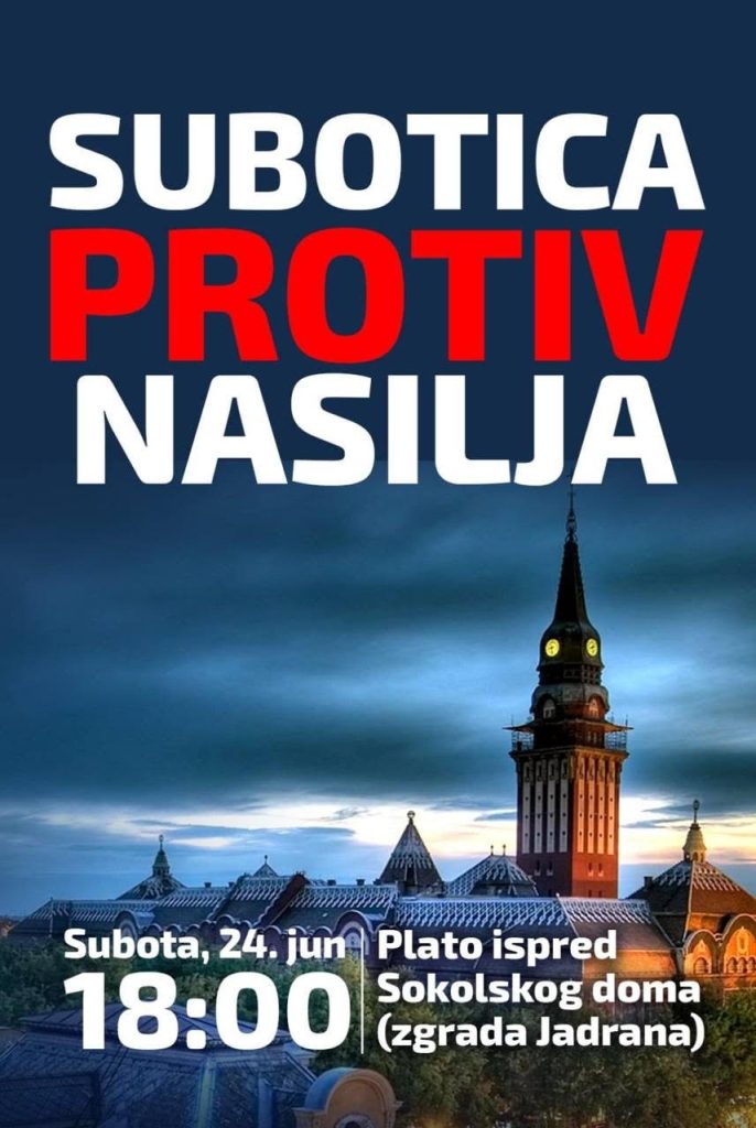 Protest “Subotica protiv nasilja” biće održan u subotu, 24. juna, sa početkom u 18 časova.