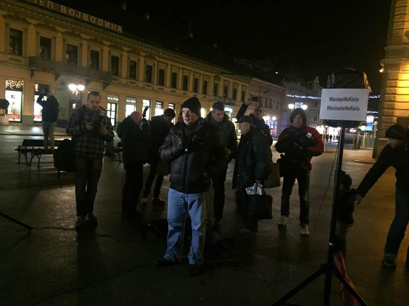 Oko 150 novinara i građana održalo je večeras protest “Novinaari ne kleče” na centralnom novosadskomn Trgu slobode, odakle su predsedniku Vlade Srbije Aleksandru Vučiću poručili da neće odustati od svojih zahteva.