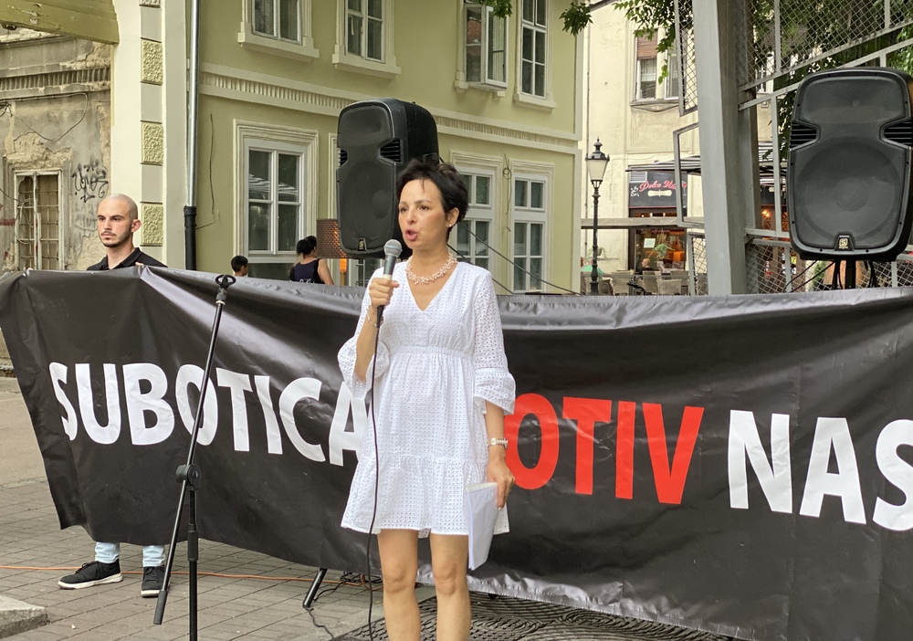 Subotičanka Đorđija Aksentijević, majka devojčice koja je bila žrtva vršnjačkog nasilja, a potom i diskriminacije od strane škole zbog svoje bolesti, izjavila je na četvrtom po redu protestu “Subotica protiv nasilja” da je nasilje u Srbiji svakodnevno, „iz medija, na ulicama, na radnim mestima, u sportu, kulturi, nad ljudima, životinjama, nad zemljom, vodom i vazduhom, ali da je najstrašnije ono koje se dešava nad decom“.