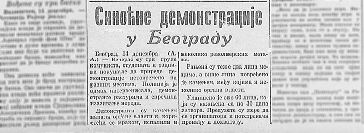 Odrede policije i žandarmerije hvata panika. U želji da rasture demonstracije, upotrebljavaju silu, ulazeći u otvoreni sukob s građanima i građankama. Koriste pendreke, bajonete, a zatim i bojevnu municiju, dok se demonstranti brane kamenicama i letvama otkinutim sa ograda okolnih kuća.