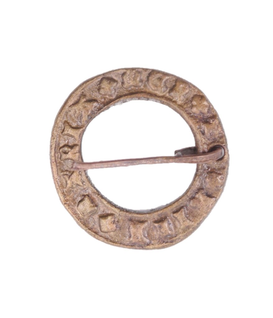 “Kružna prstenasta pređica (broš) sa plastičnom unutrašnjom i spoljašnjom ivicom nosi natpis +HILF+MARIA+MER+T (Ti mi pomozi Marijo) ispisan gotičkom majuskulom. Natpis je nakon slova T prekinut otvorom za iglu. Prečnik pređice je 3 centimetara i težina iznosi 4 grama”, objašnjava Neda Dimovski.