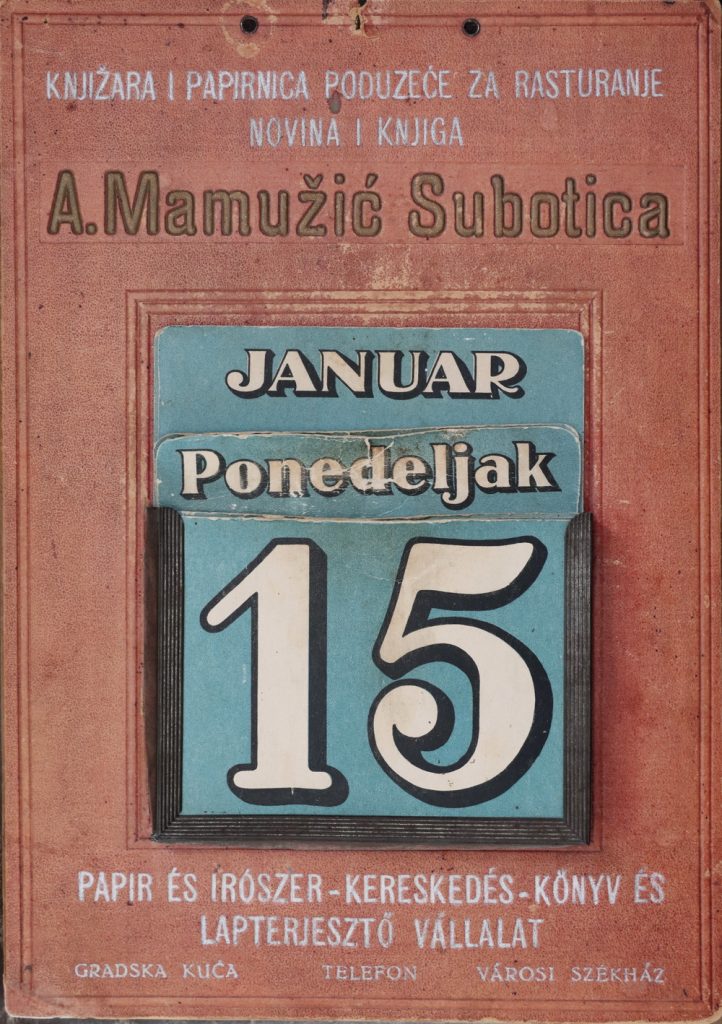 Zidni kalendar subotičke knjižare i papirnice A. Mamužić, koji ujedno predstavlja i reklamu ove radnje, potiče iz međuratnog perioda. Osnova kalendara – na kome nije naznačena godina, jer se radi o takozvanom „večitom kalendaru“ – je od smeđeg kartona, dimenzije 24 x 34 centimetara.