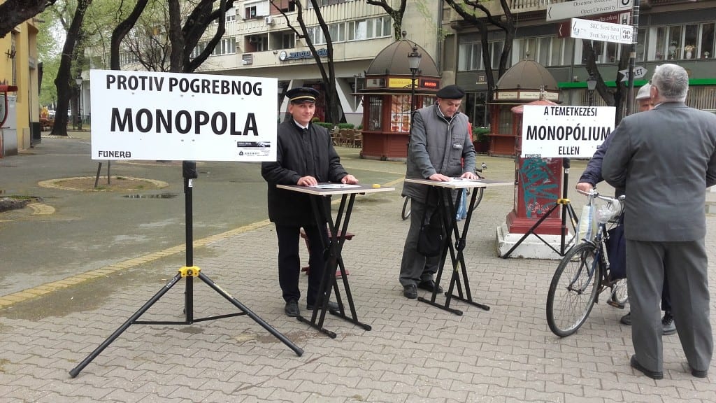 Privatni pogrebnici prikupljaju potpise građana na gradskom trgu zahtevajući od Skupštine grada da donese novu odluku o sahranjivanju i grobljima. Peticija „protiv pogrebnog monopola“ može da se potpiše do kraja sledeće nedelje.