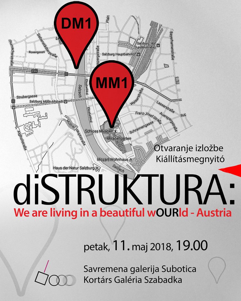 Reč je o multimedijalnom work in progress projektu, započetom 2007. godine, koji se bavi temama odliva intelektualaca i migracijama sa bivšeg YU prostora. Koristeći razne medije i pristupe, diSTRUKTURA svojim umetničkim radom skreće pažnju na probleme koji se dešavaju na ovom području, a koji su dostigli svoj vrhunac za vreme ratova devedesetih i, nažalost, još uvek traju. Izložba We are living in a beautiful wOURld predstaviće ovaj projekat kroz prostornu instalaciju sačinjenu od QR kodova na pleksiglasu, fotografija portreta učesnika projekta i psihogeografskih mapa austrijskih gradova.