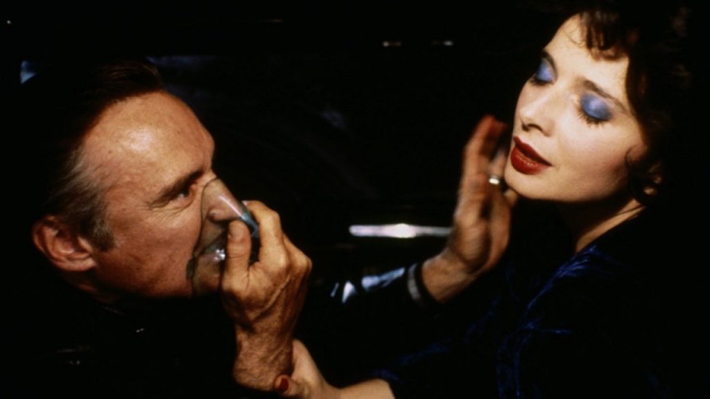 Naslovljen istoimenim hitom Bobija Vintona iz 1963. “Plavi somot” prati mladog Džefrija koji igrom slučaja pronalazi odsečeno uvo u travi, koje će ga uvesti u vrtlog kriminala, nasilja i intrige o kakvom nije ni sanjao. U izuzetnoj glumačkoj podeli sa Kajlom Meklahlinom, Laurom Dern i Izabelom Roselini, dominira izvanredni Denis Hoper u ulozi nasilnika Frenka koja će ga vratiti u svet Holivuda nakon višegodišnje pauze. Iako je u početku postigao malu bioskopsku gledanost i podeljenu ocenu kritike i javnosti, tek nakon objavljivanja na VHS traci i pristupa široj javnosti “Plavi somot” postiže ogroman uspeh koji mu obezbeđuje kultni status u istoriji filma.