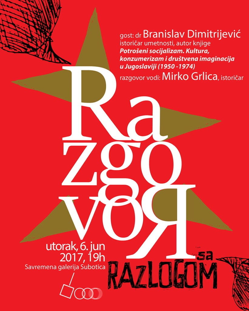 Savremena galerija Subotica započela je nedavno novi ciklus programa Razgovor sa razlogom u oviru kog će u utorak, 6. juna, sa početkom u 19 časova, gostovati Branislav Dimitrijević, istoričar umetnosti i autor knjige “Potrošeni socijalizam. Kultura, konzumerizam i društvena imaginacija u Jugoslaviji (1950-1974)” u izdranju “Fabrike knjiga” Beograd, 2016.