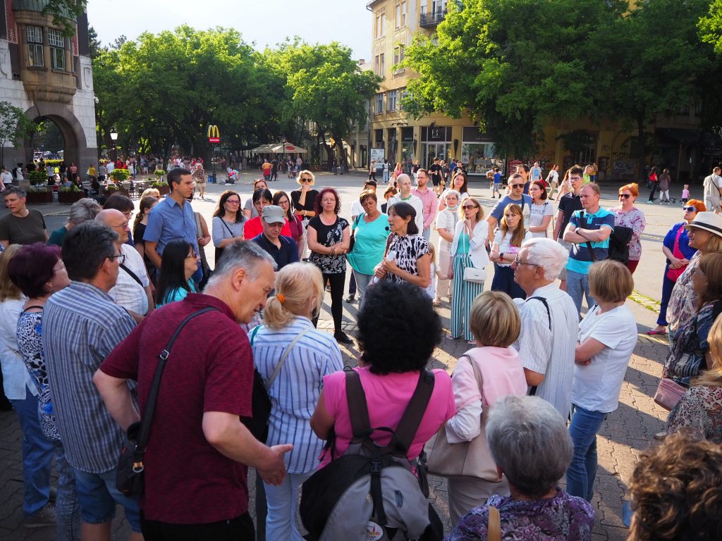 Šetnja je deo izložbe “Žito i motivi poljoprivredne delatnosti u arhitekturi Subotice” koja je postavljena ispred stubova Narodnog pozorišta.