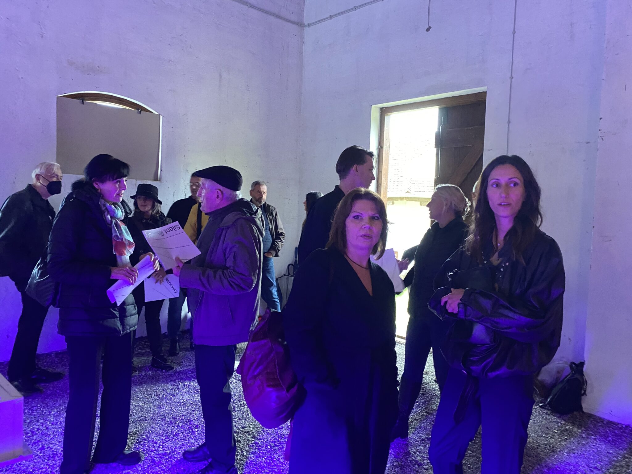 Neko ko je nadzirao ceo tok nastajanja ove izložbe i neko ko ih je držao sve na okupu je kustostkinja izložbe „Silent Recovery“, Nela Tonković, koja je tokom otvaranja, pred punim hangarom, rekla da je njeno trajanje bilo uslovljeno okolnostima koje je diktirala epidemijska situacija, a početak saradnje umetnika je, umesto međusobnih kontakata i razgovora, bio sveden na onlajn komunikaciju i rad.