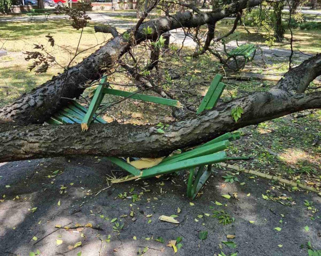 Drvo koje je palo na klupu u parku Ferenca Rajhla, foto: SSP Subotica