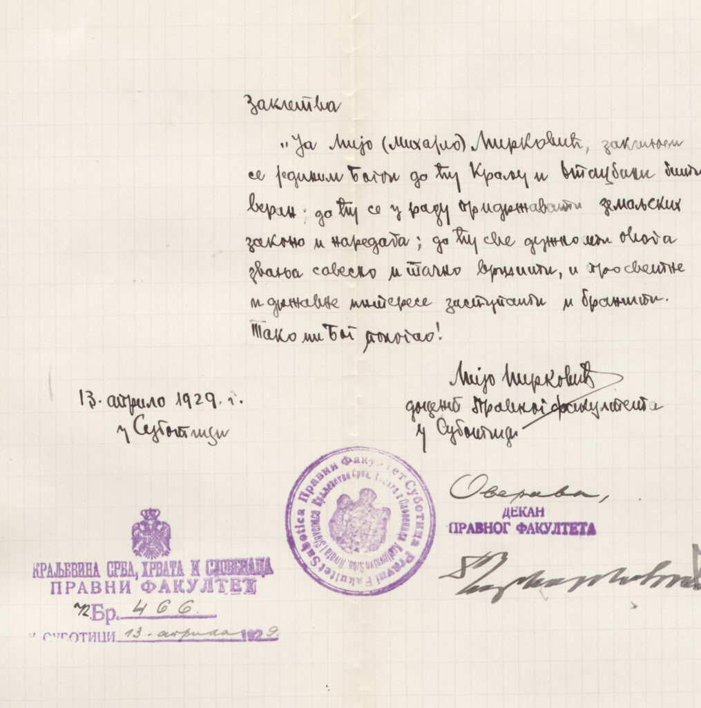 Zakletva Mije Mirkovića, izvor: Istorijski arhiv Subotica