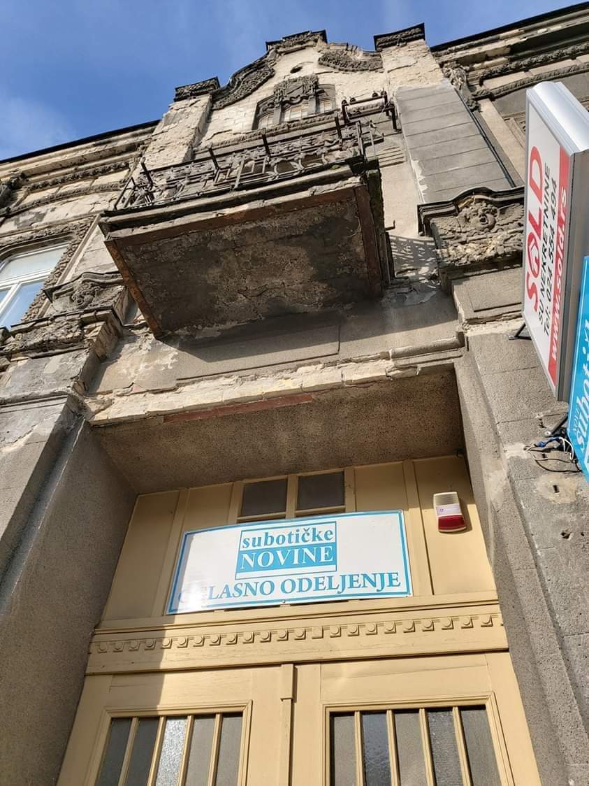 Obrušava se fasada secesijskog objekta u ulici Maksima Gorkog u Subotici, u kojoj je smešten list Subotičke novine.