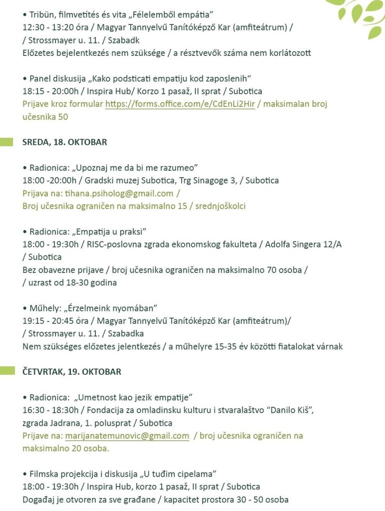 Prilikom najave bogatog programa koji će se od 10. do 20. oktobra odvijati u više vojvođanskih gradova, psihološkinja Instituta za javno zdravlje Vojvodine i koordinatorka manifestacije, Dragica Jovišević Popović, rekla je da je tema ovogodišnjeg Festivala – empatija.
