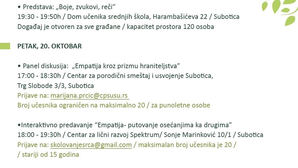 Svi sadržaji na Festivalu mentalnog zdravlja su besplatni, a detaljan program ove manifestacije možete pogledati u nastavku: