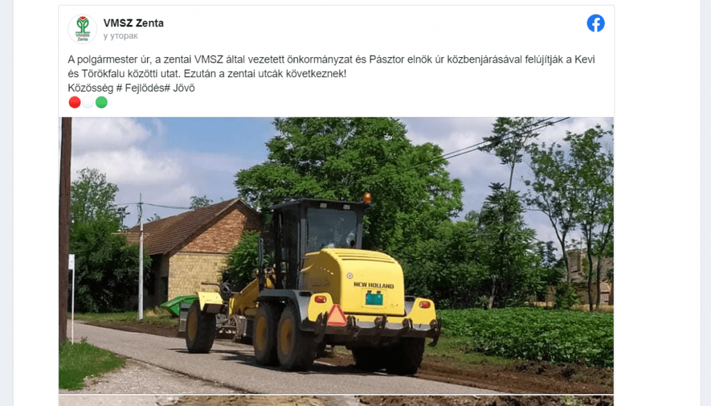 Sigurno je jedan od članova Saveza vojvođanskih Mađara primetio ovaj napis i odmah oglasio alarm, pa preneo čelnicima da postoji problem, jer se naprednjaci kite tuđim perjem, pošto je ovaj put zasluga SVM-a, oni su pomerili planine da bi ovaj projekat bio započet. Kao rezultat ovoga, u 11 časova i 52 minuta, u stvari tačno pola sata posle postavljanja napisa Srpske napredne stranke, na zvaničnoj Facebook stranici senćanske organizacije SVM-a, pojavio se sledeći tekst: