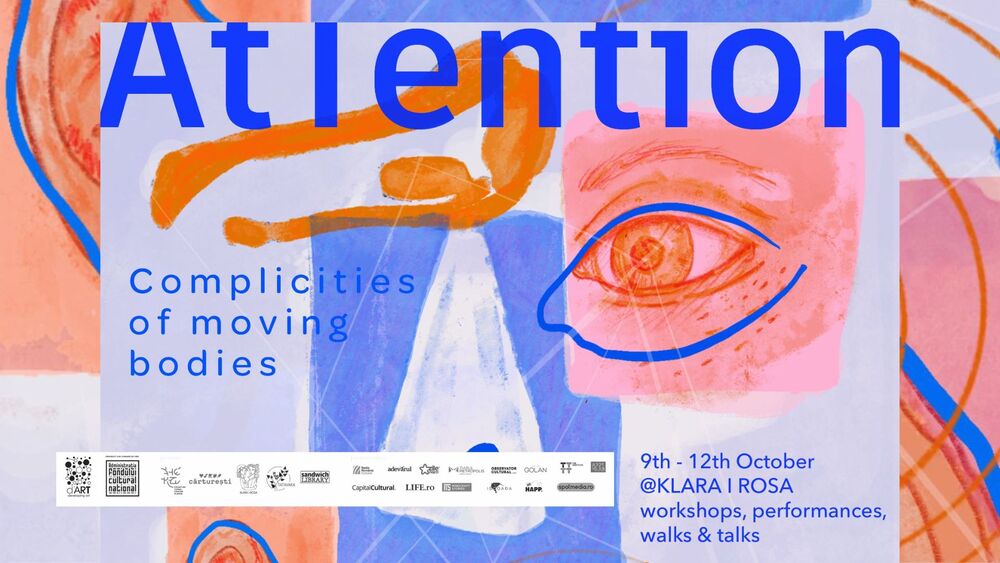 AtTention. Complicities of Moving Bodies je program koji će biti održan u periodu od 9. do 11. oktobra, u prostoru Udruženja „Klara i Rosa“. Ovaj koreografski projekat izgrađen je na raskrsnici dva ključna koncepta: pažnje, kao selektivnog i usmerenog oblika razmišljanja, i tela, kao medija/prostora praktičnih i teorijskih susreta u plesu, pozorištu, vizuelnim umetnostima i filmu.