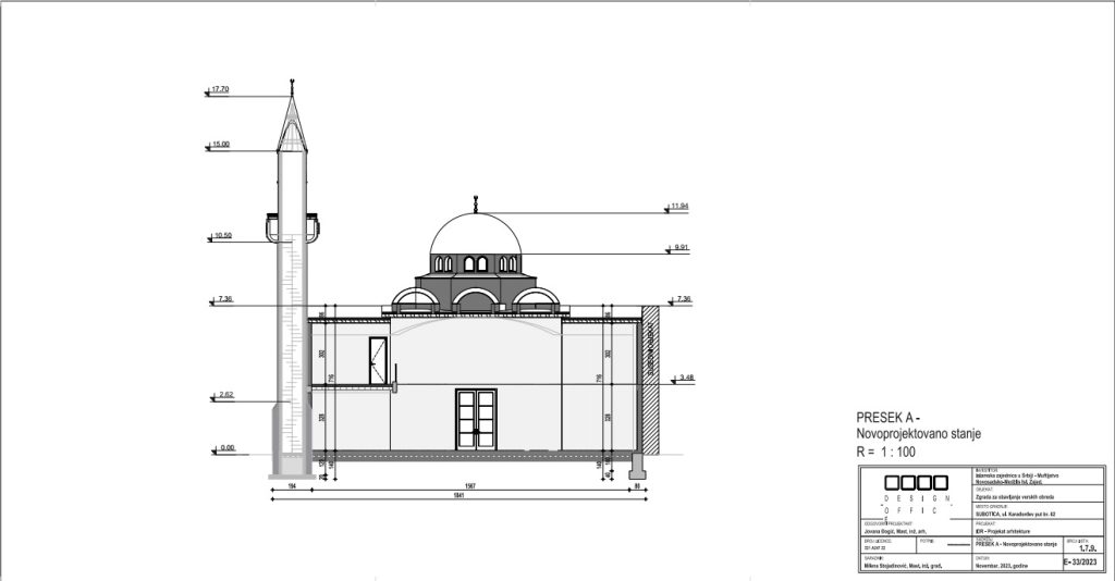 “Postojeća krovna konstrukcija se zadržava, tačnije projektom je predviđeno da se ukloni, pregleda i saniraju moguća oštećenja nastala tokom demontaže, te da se nakon završenih radova dogradnje betonskog dela minareta, postojeća krovna konstrukcija i krovni pokrivač vrate na predmetni deo objekta. Na dograđenom delu minareta predviđa se postavka fasadnih dekorativnih elemenata”, navodi se u tekstu projekta.