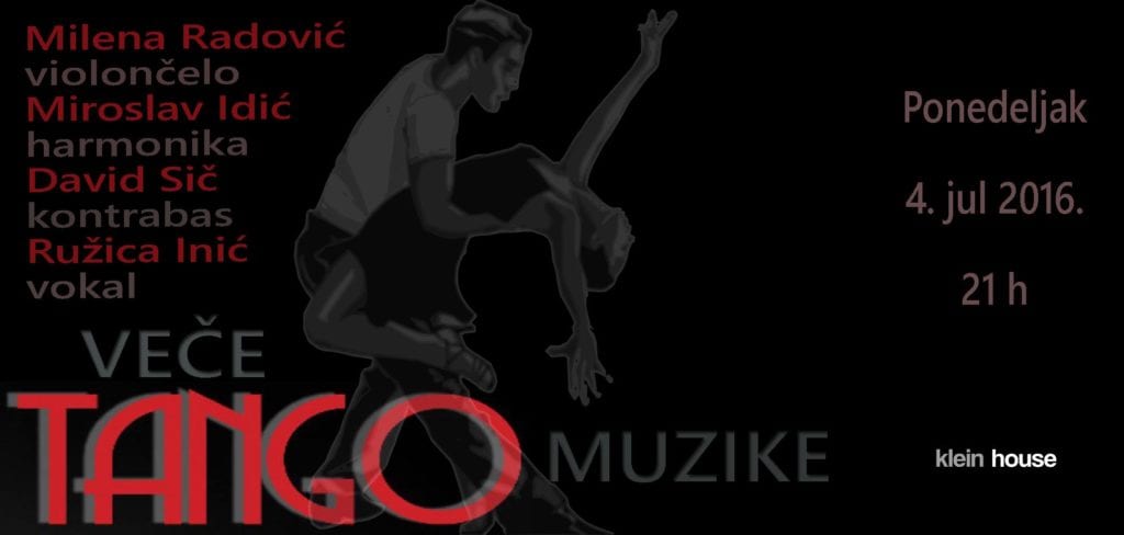 Veče tango muzike biće održano u ponedeljak, 4. jula, u prostorijama Klein house-a, Štrosmajerova 9, sa početkom u 21 čas.