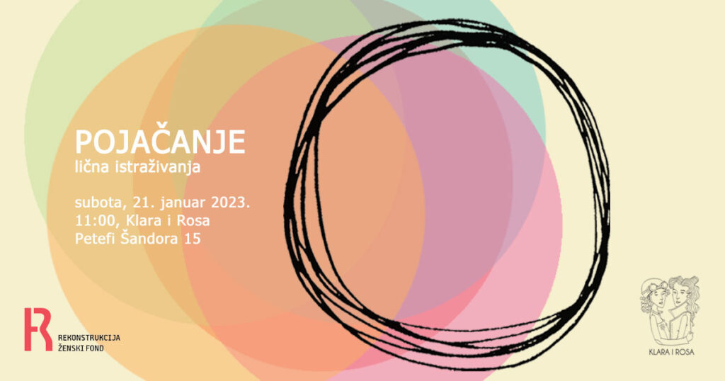 Udruženje “Klara i Rosa” u sklopu projekta “Pojačanje” realizuje u subotu, 21. januara, drugu od šest radionica namenjenih mladim ženama od 16 do 30 godina, tokom kojih one imaju priliku da kroz kreativni proces istraže teme glasa, identiteta, ženskog principa, odnosa sredina-pojedinac, strah-bes, želja-akcija.