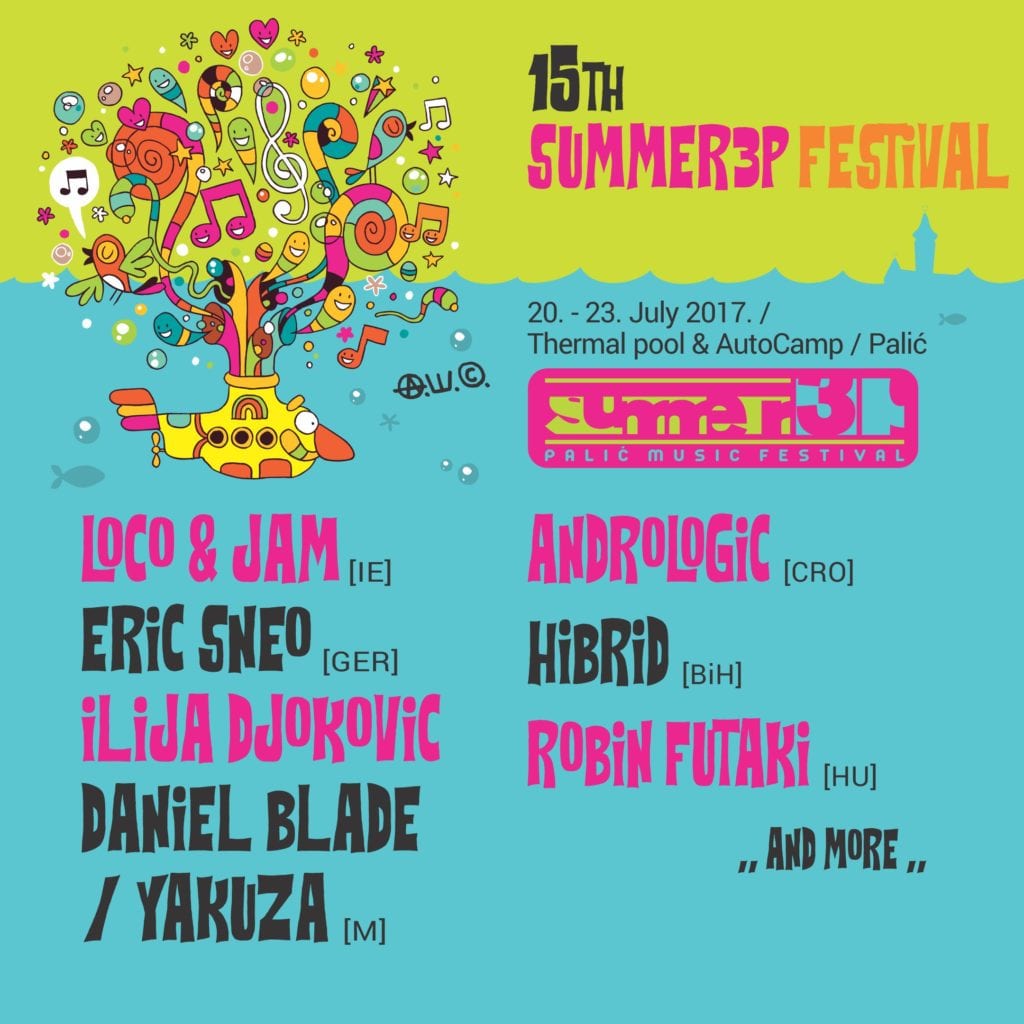 Petnaesto, jubilarno izdanje Summer3p festivala održaće se od 20. do 23. jula na Termalnim bazenima i Muškom štrandu kraj jezera Palić uz verovatno najatraktiviniji muzički program do sad i jedinstven miks kvalitetne zabave i atraktivnih kulturnih sadržaja, uz obaveznu dozu aktivizma.