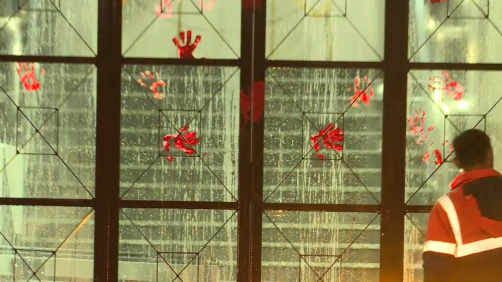 U ponedeljak uveče aktivisti Pokreta slobodnih građana na Gradsku kuću okačili su transparent na velikom belom platnu na kojem je crvenom farbom ispisano „Krvave su vam ruke“.