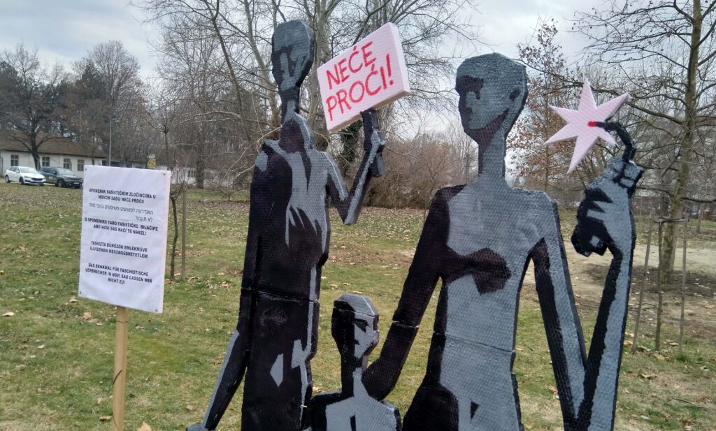Na mestu gde je trebalo da bude postavljen spomenik nalazi se samo postament, na kojem antifašisti neprestano ostavljaju protestne poruke.