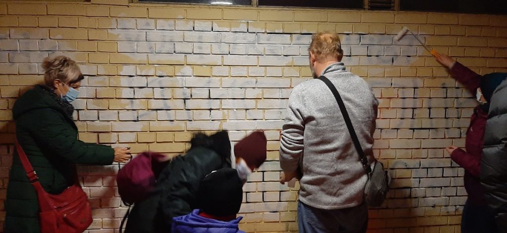 Oko stotinu Novosađana i prijatelja Dinka Gruhonjića spontano su se sinoć okupili ispred Gruhonjićeve zgade, donevši sa sobom četke i nekoliko kanti farbe kojom su prekrečili grafite.