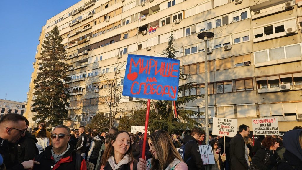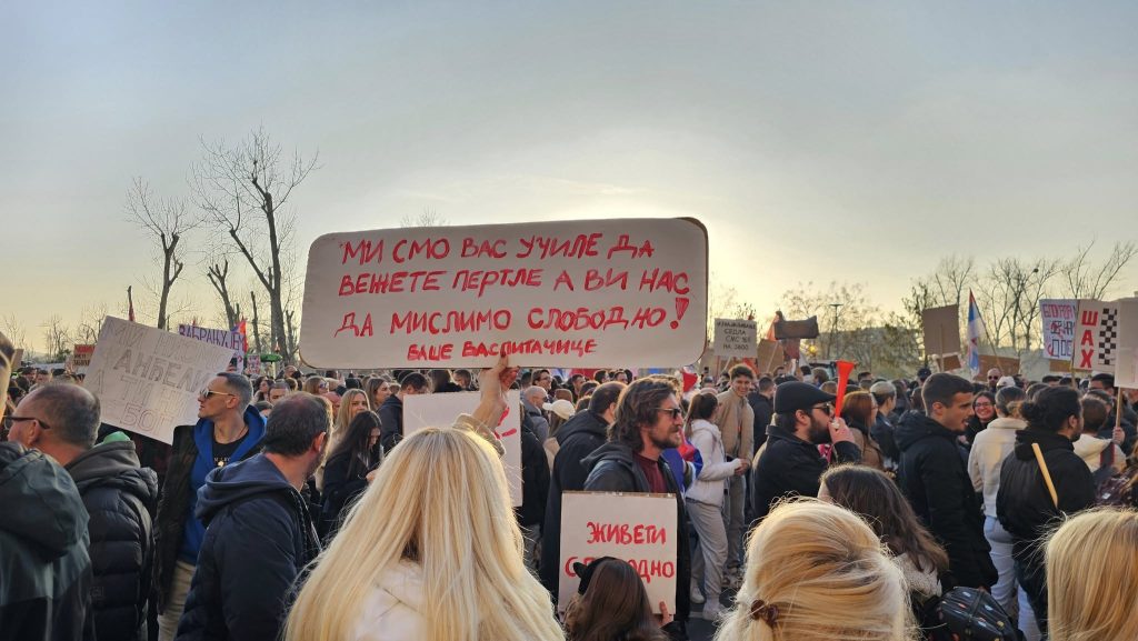 “Mi ovde nismo iz hira, mi smo ovde jer ne želimo da odustanemo, jer verujemo u pravdu, jer verujemo u dostojanstvo. Verujemo da ovaj grad i ova zemlja mogu i moraju biti bolji. Kažu nam da je lakše ćutati ili pognuti glavu, ali mi biramo borbu jer znamo da bez borbe nema ni promena. Nećemo okrenuti glavu na nepravdu, nećemo se praviti da ne vidimo koliko je naša zemlja potonula u korupciju”, kazala je ta studentkinja.