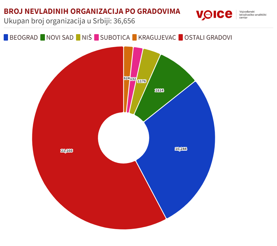 Kada je o teritorijalnoj raspoređenosti organizacija reč, na teritoriji cele Srbije je registrovano 36.656 udruženja, neprofitnih organizacija i fondacija, pokazala je analiza VOICE-a.